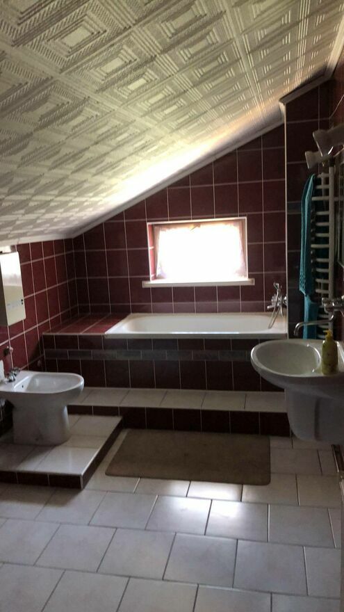 Dom z 4 pokojami, kuchnią, dwoma łazienkami, osobną ubikacją, garażem, kotłownią i pomieszczeniem gospodarczym. Około 1000 metrową działką w centrum miejscowości z pełną infrastrukturą (szkoła, sklepy, kościół, restauracja, bank i przystanek autobusowy). Dom do wynajęcia od zaraz w cenie 2500 złotych miesięcznie + opłaty w/g zużycia. Dostępne wszystkie media, prąd 230/380V, woda z wodociągu, kanalizacja, gaz na budynku, centralne ogrzewanie w miedzi, piec na paliwo stałe. Umeblowane. Kaucja 2 tys. Pozostałe do uzgodnienia.Sprawdź zainteresowanie tym ogłoszeniem